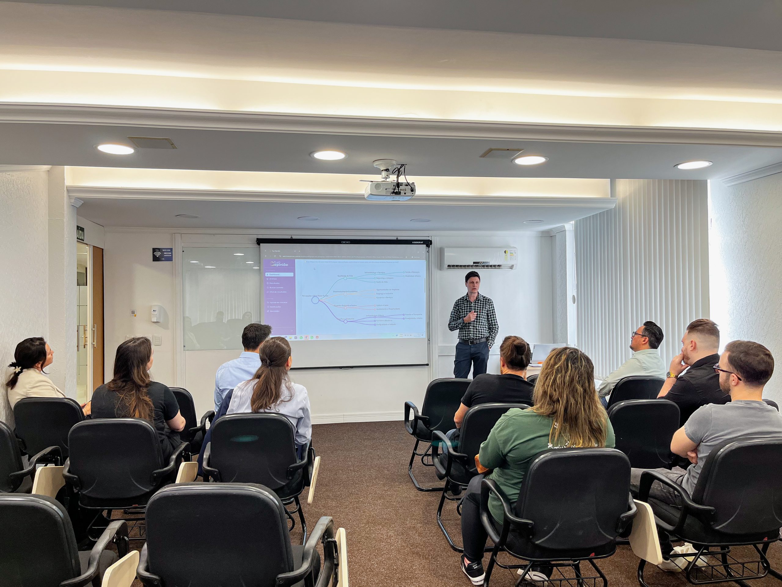 Na sequência, o pesquisador e gestor do projeto, Kenny Basso, apresentou um panorama inicial da pesquisa já realizada. Ao todo, 348 pessoas foram ouvidas — entre moradores, formadores de opinião e pessoas de fora da cidade. O levantamento revelou percepções consistentes sobre o que caracteriza Passo Fundo, e esses insights formarão a base conceitual para que as agências interpretem e materializem uma marca que represente, de forma autêntica, o sentir e o viver da cidade.