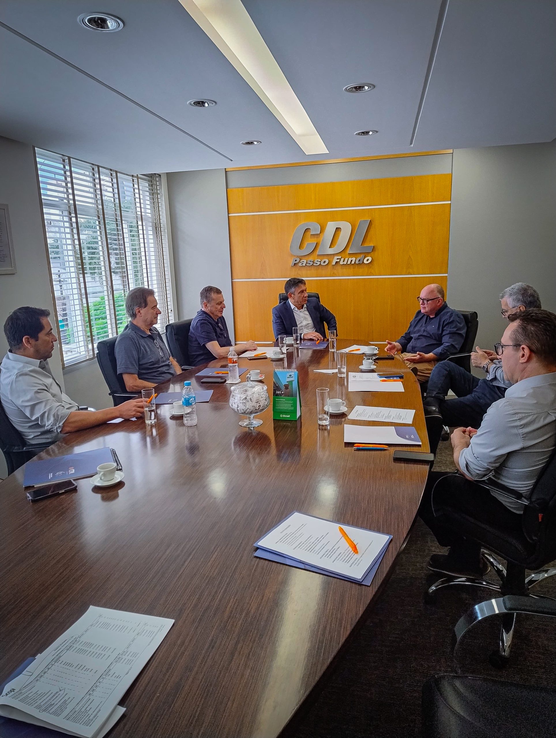 Nesta quinta-feira (16), a CDL Passo Fundo lançou oficialmente o projeto Café com Executivo Municipal, um espaço de diálogo estratégico entre a entidade e representantes do poder público. A primeira edição do programa contou com a presença do Secretário de Desenvolvimento Econômico, Adolfo de Freitas, que participou da reunião institucional com o presidente da CDL, Evandro Pereira da Silveira, e membros da diretoria, incluindo Fernando De Carli, Sergio Giacomini, Agadir Stramari, Valter Ceolin e o diretor executivo Onis Casagrande.
