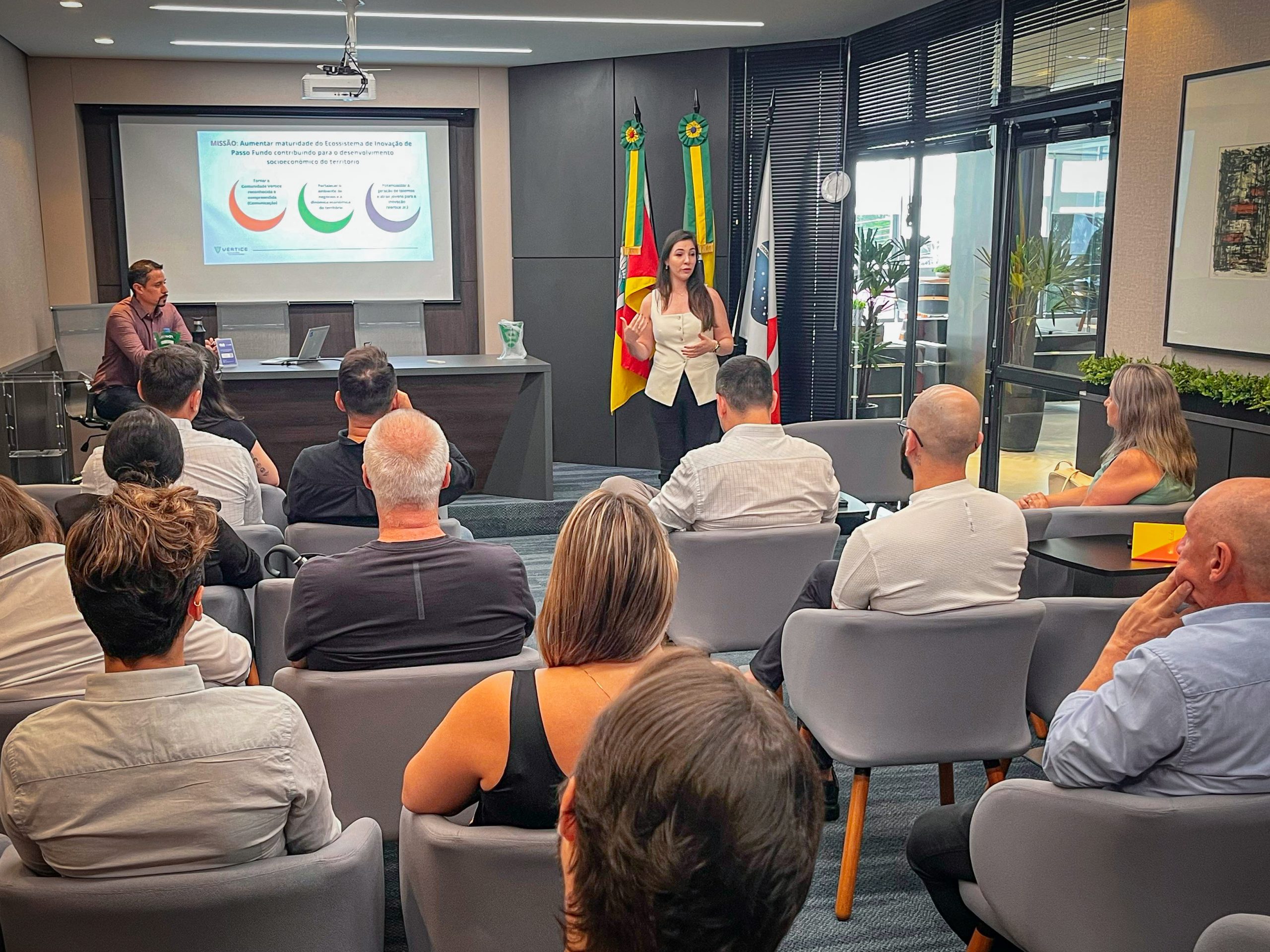 O Conselho Vértice é formado por entidades e empresas que trabalham em conjunto para fortalecer o desenvolvimento econômico e a inovação, promovendo a troca de experiências e estratégias para impulsionar o setor empresarial.