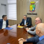 Nesta quarta-feira (9), a CDL Passo Fundo, representada pelo presidente Evandro Pereira da Silveira, os diretores Fernando De Carli e Sergio Giacomini, Onis Casagrande, e Daniel dos Santos, reuniu-se com o prefeito Pedro Almeida. Também participaram do encontro o secretário de planejamento econômico, Diorges Oliveira, e o procurador geral do município, Adolfo de Freitas.