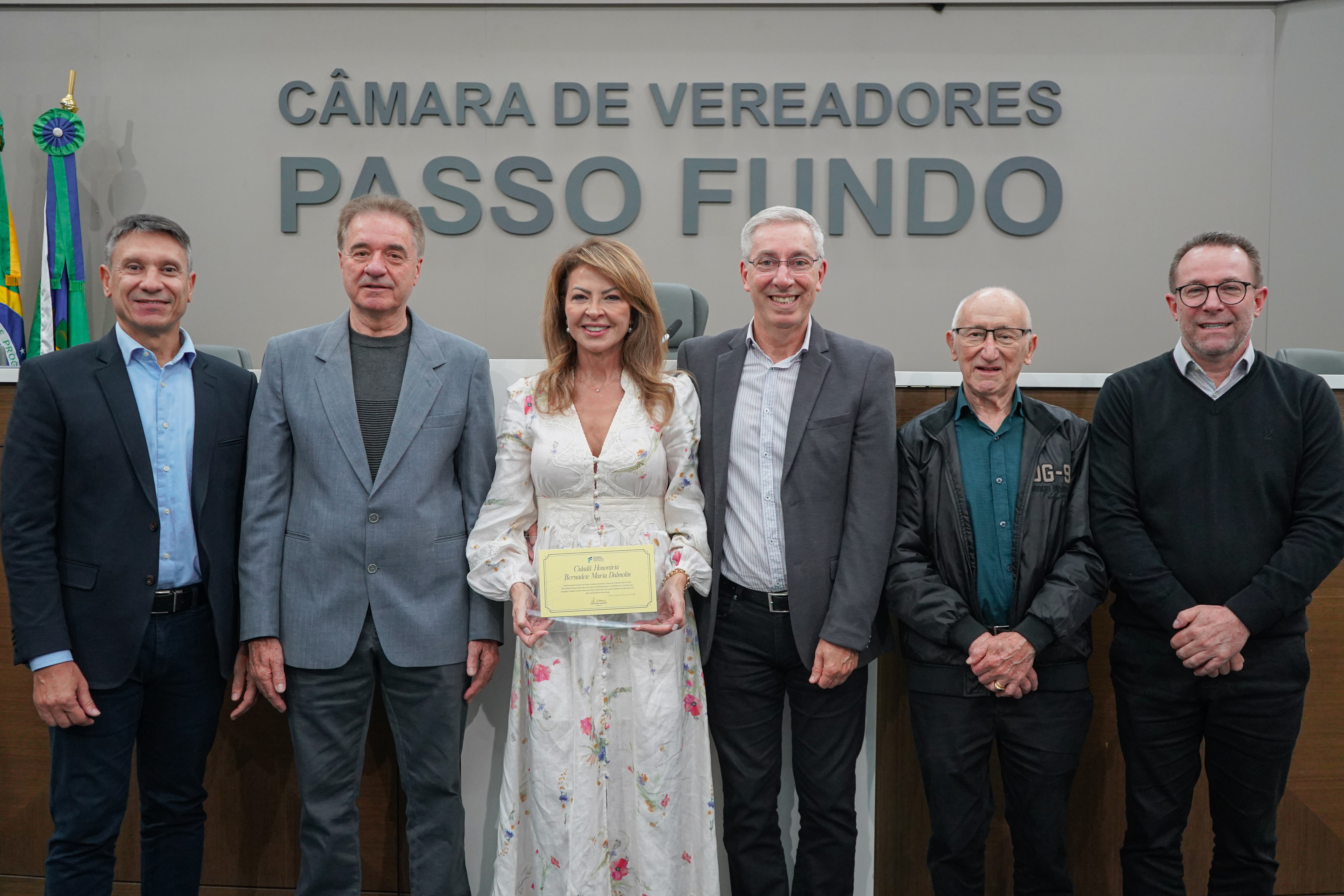 A CDL Passo Fundo esteve presente na solenidade que concedeu à reitora da Universidade de Passo Fundo, Bernadete Maria Dalmolin, o título de Cidadã Honorária de Passo Fundo. A homenagem foi realizada na Câmara Municipal, por iniciativa do vereador Felipe Manfroi, reunindo parlamentares, representantes do Executivo, lideranças de entidades acadêmicas, colaboradores da UPF e convidados.