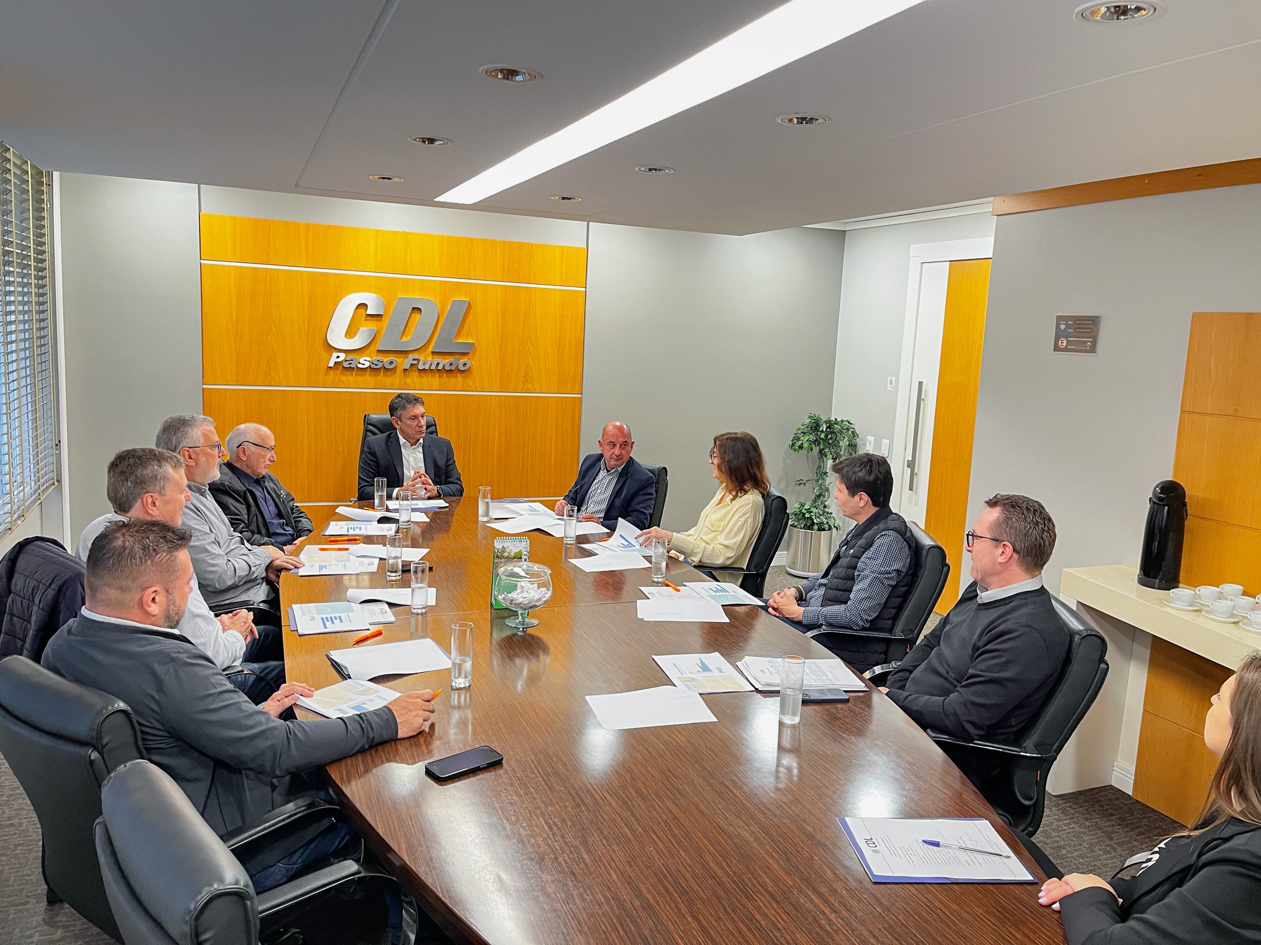 Nesta quinta-feira (16), a CDL Passo Fundo realizou a 13ª edição do Café com Executivo Municipal, recebendo como convidado o Secretário de Habitação, Fernando Müller Pires. O encontro foi conduzido pelo presidente da CDL, Evandro Pereira da Silveira, e contou com a presença dos diretores Ary Rabello, Sergio Giacomini, Márcia Meneguzzi, Valter Ceolin, Kenny Basso e Márcio Moraes, além do executivo Onis Casagrande e da coordenadora institucional Milena Zolet.