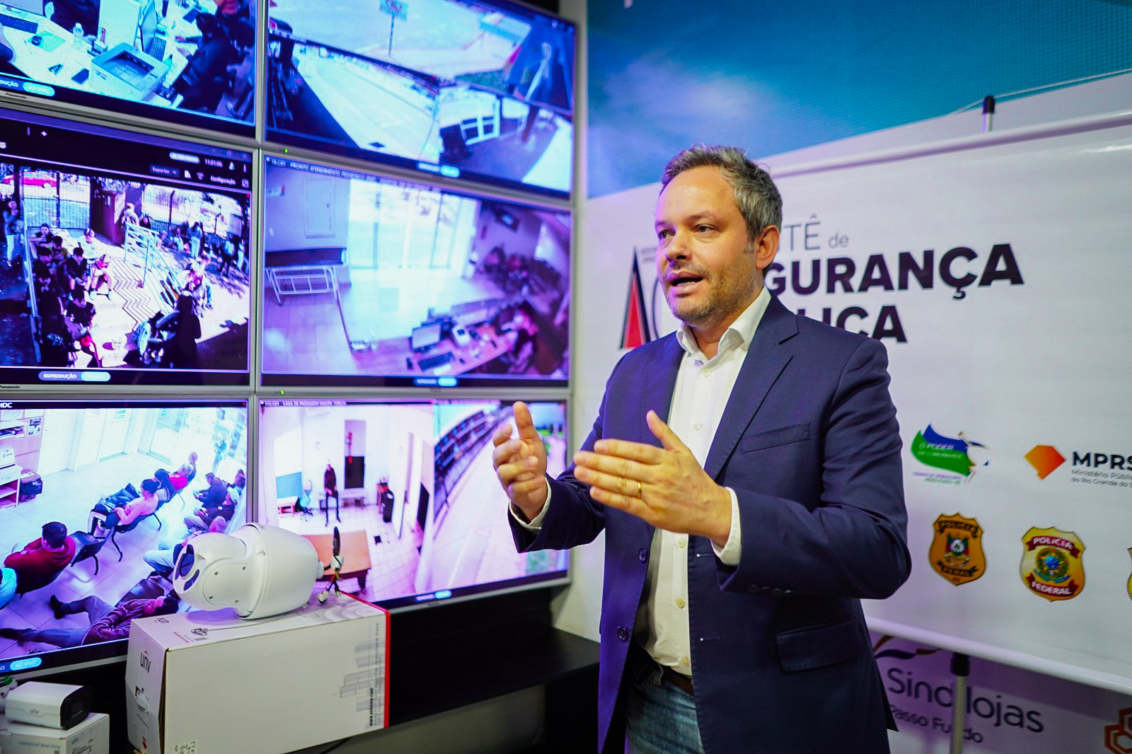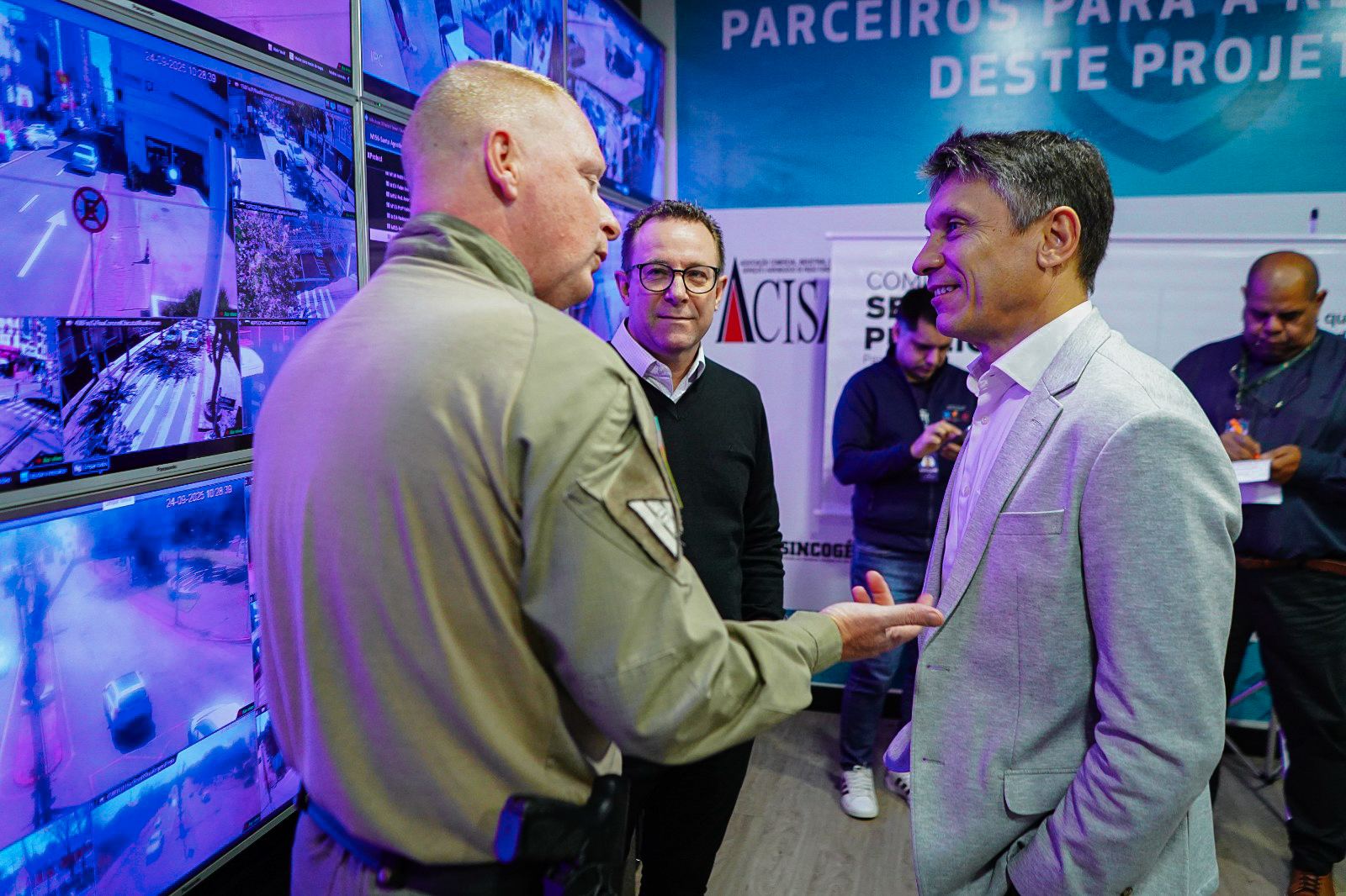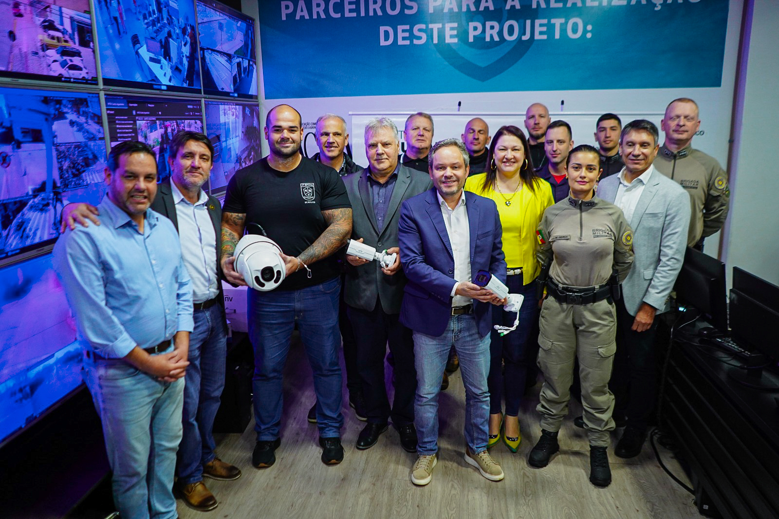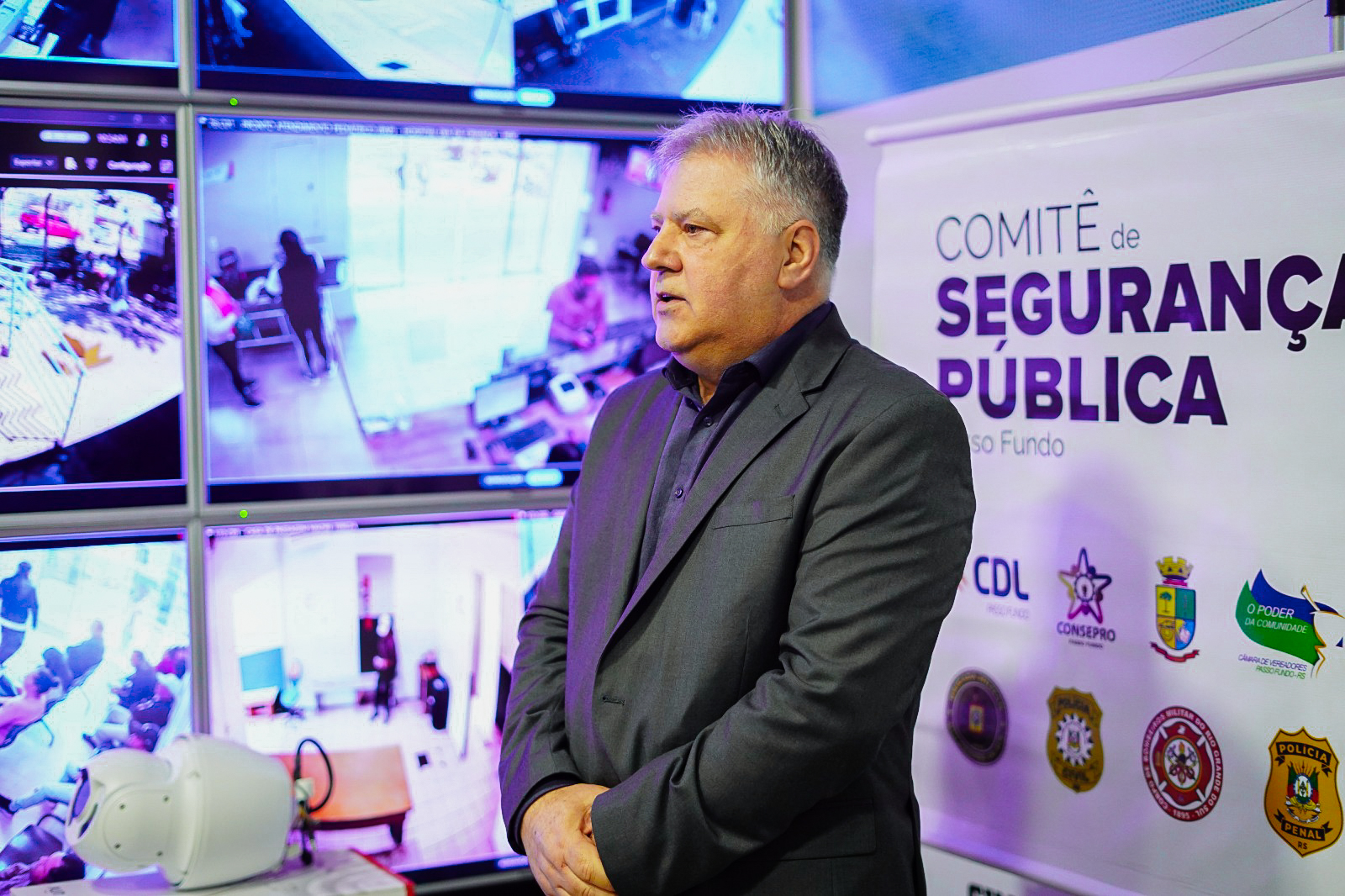 O Conselho Comunitário Pró-Segurança Pública (Consepro) foi protagonista na ampliação do sistema de videomonitoramento de Passo Fundo com a entrega simbólica de seis novas câmeras OCR (Optical Character Recognition), realizada nesta quarta-feira (24), na sala de monitoramento da Brigada Militar. A cerimônia marcou oficialmente a disponibilização dos equipamentos à comunidade, que entraram em operação em dezembro de 2024.