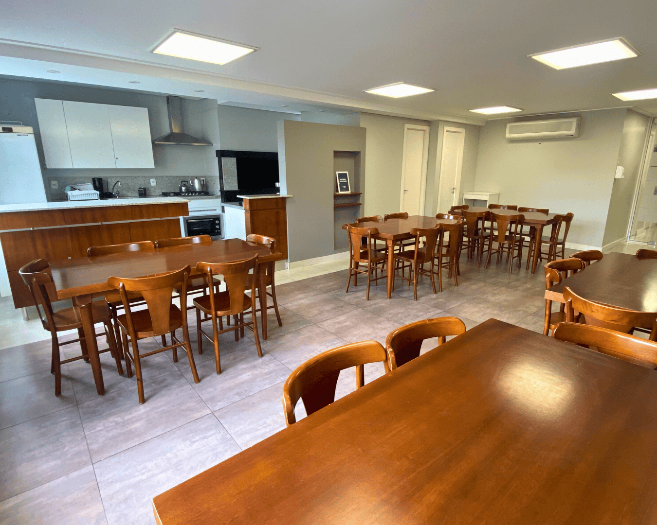 Ambiente moderno e climatizado, ideal para reuniões, treinamentos e confraternizações corporativas.