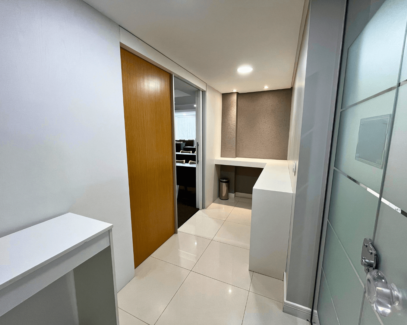 Além disso, conta com iluminação planejada e mesas de apoio funcionais, que facilitam o trabalho em grupo e o uso de notebooks.