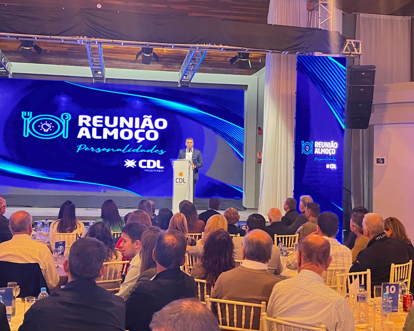 Nesta quarta-feira (22), a CDL Passo Fundo realizou mais uma edição da tradicional Reunião Almoço Personalidades, evento que reuniu mais de 350 pessoas entre empresários, autoridades, imprensa, familiares e amigos, para um encontro marcado por inspiração, emoção e reconhecimento. A convidada desta edição foi Márcia Capellari, presidente executiva do Instituto Aliança Empresarial, referência no ecossistema de inovação e negócios da cidade.